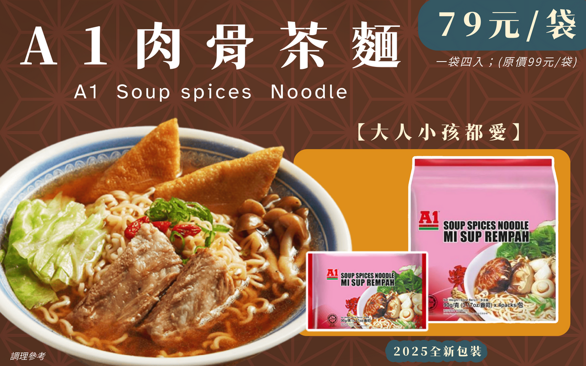 (新包裝) A1肉骨茶麵360g (90g x 4包)